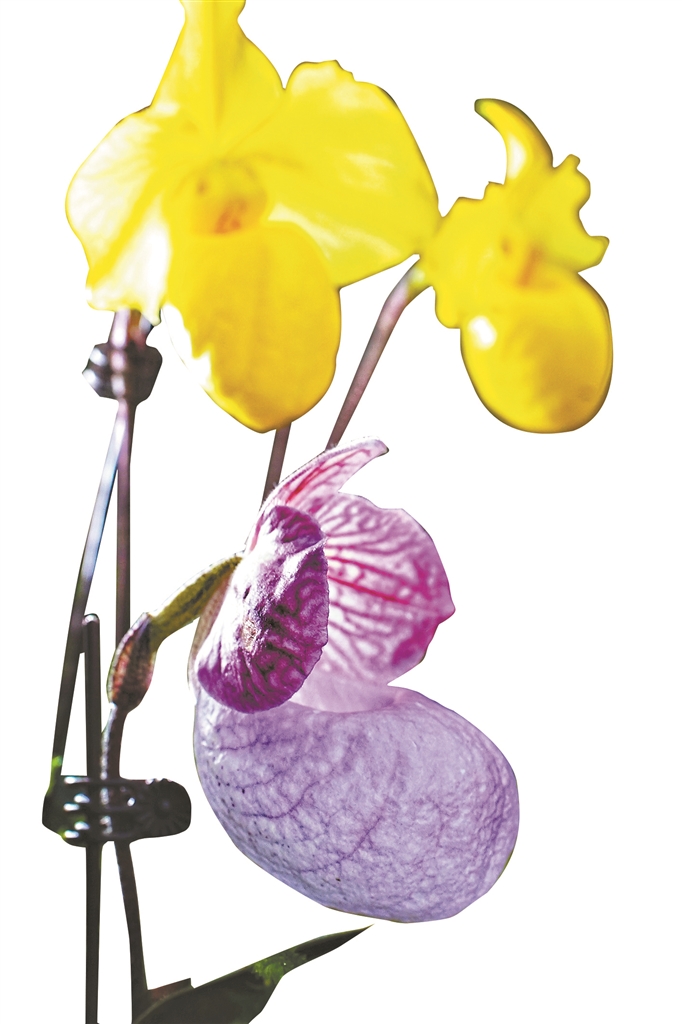 ▲兜兰中的金童玉女,其中,黄色为杏黄兜兰,粉色为硬叶兜兰。