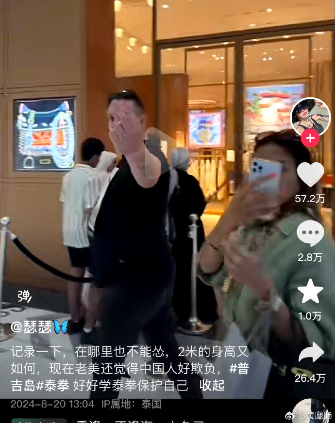 当事人张女士本月20日于视频平台发布一条相关视频,一外国男性对镜头“竖中指”,后配有一张双方肢体冲突后男子衣衫被撕破的图片。本月21日,张女士再次发布视频显示,在泰国一家百货商场门口,前述视频中的外国男子出手推搡张女士的母亲,她上前理论时对方对他们比中指,两人随即发生肢体冲突,男子衣衫被撕破,随后与同行泰国女性乘车离开。