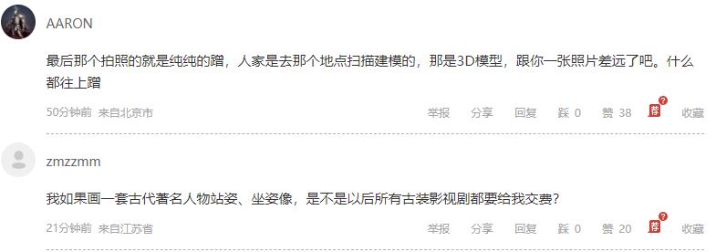 “那个孙悟空的姿势不是那个人首创的吧,那是连环画里的孙悟空的标准姿势”、“我如果画一套古代着名人物站姿、坐姿像,是不是以后所有古装影视剧都要给我交费?”