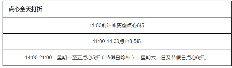 营业时间:早市07:00-11:00;午市11:00-14:00;下午茶14:00-17:00;晚市17:00-21:00