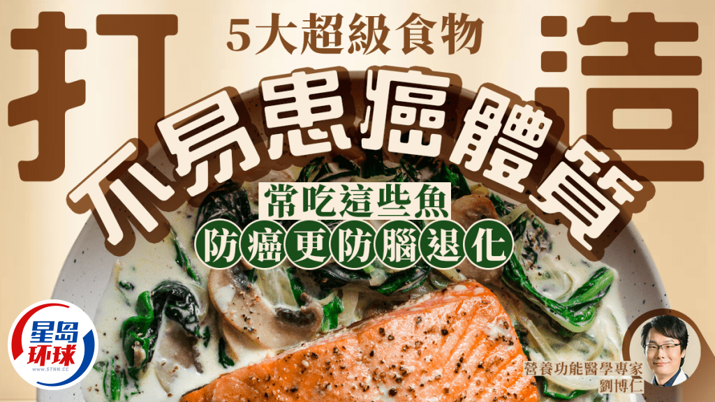 多吃鱼可防癌? 有医生推荐5大超级食物,具备多种保健功效,除了有保护大脑、心血管等作用,更有助打造不易罹患癌症的体质,包括4种鱼。 其中,部分食物预防大肠癌、乳癌的效果最为明显!