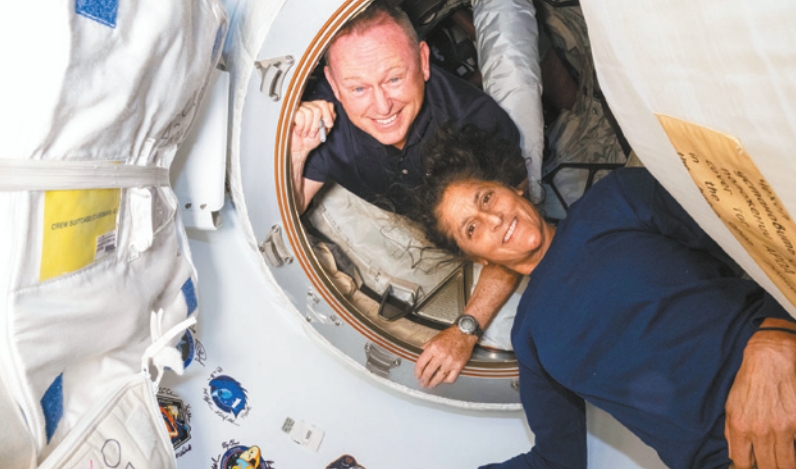 ▲太空人威尔莫尔(左)和威廉斯自6月起滞留国际太空站至今。NASA/美联社
