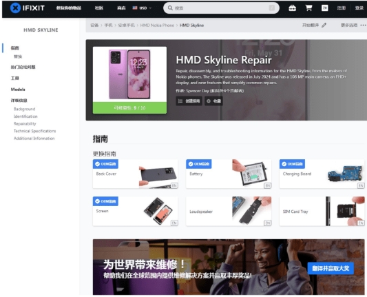 ▲iFixit网站提供有齐Skykine拆壳、换电、换芒等自行维修教学。