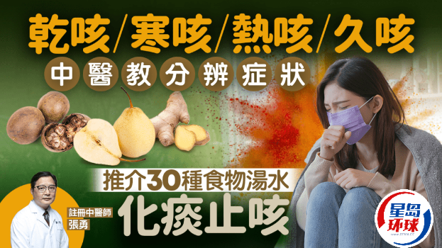 转季时分天气不稳定,患感冒、流感、新冠肺炎等病,持续咳嗽可如何止咳?注册中医师张勇表示,中医治疗咳嗽,需按照干咳、寒咳、热咳、久咳、过敏性咳嗽等类型,辨症论治。他教大家分辨5类咳嗽症状,并推荐30种食物及汤水食疗,助患者化痰止咳。