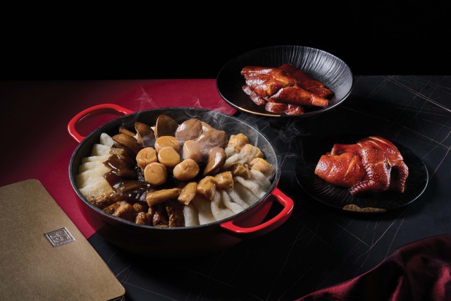 自从早几年疫情被困,不少港人都爱上安坐家中享用美食,中秋团圆饭来一个奢华版外卖盆菜,或者不失为好选择。香港JW万豪酒店的中菜厅万豪金殿是米其林一星餐厅,获米其林盛赞为精致粤菜,传统与创新兼备。适逢中秋特意推出极丰盛的应节盆菜,集齐十八款上乘食材,包括澳洲海参、三十三头南非吉品鲍鱼、发菜、鹅掌、花菇、瑶柱甫、茶熏平原鸡、烧鹅、虾籽六头虎虾球、百花酿羊肚菌等等,配以鲜美鲍鱼汁,一次过满足多种口感愿望。