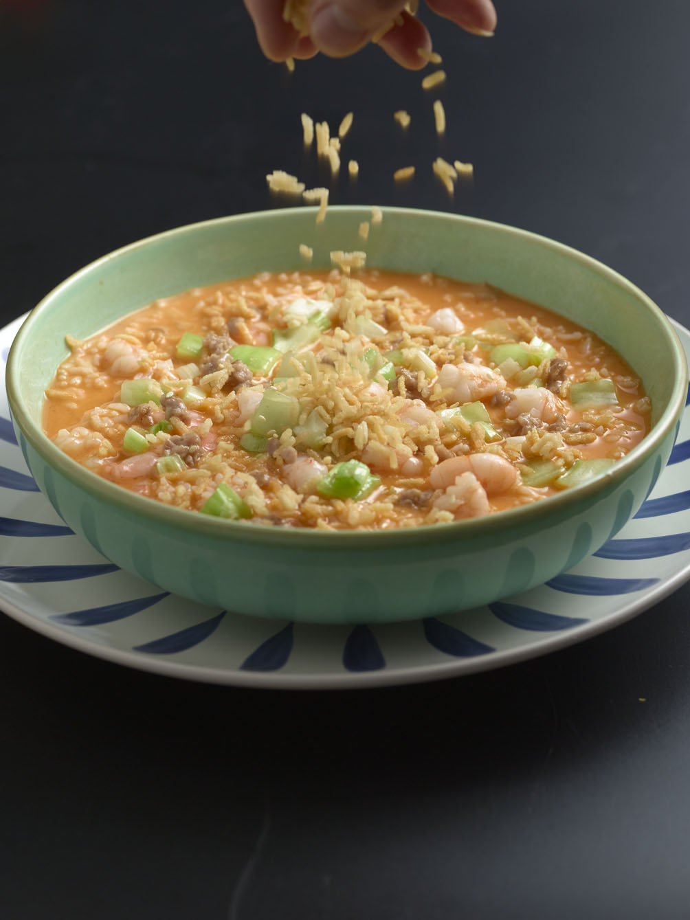今个中秋,鸿师傅就特别推荐几道海鲜小菜,份量足,卖相好适合与家人分享。前菜可先来荔枝香脆虾丸($238),混合新鲜虾、墨鱼滑打至起起胶,再包入鲜甜多汁荔枝肉,外层裹上红色脆米炸香,吃来口感丰富,弹牙香口,实手工之作。休渔期刚过,马友鱼正肥,这里做三种吃法,任君选择。经典潮式冻马友($388),店家特别起肉,冻成方块,啖啖吃出鱼油的醇鲜与肉质的紧致。要香口得试马友一夜情($338),鱼肉粗盐醃过夜,带走多馀水份,煎封两面,吃来咸香滋味。还有新菜,陈年花雕蒸马友($338),鱼油与花雕酒香相辅相成,入鱼肉嫩滑,醉香绵绵。单尾推荐鸿师傅新作,彩虹炒饭($148),上台呈现粉红、鲜黄两层色调,分别是加入火龙果汁制成的粉红炒饭以及传统“金镶银”,吃来饭粒分明,夹杂爽弹鲜虾,尽显功架。
