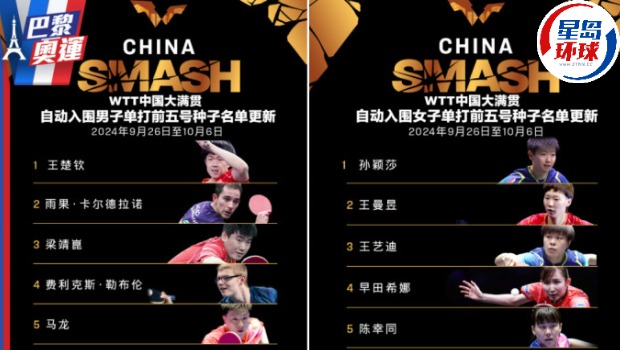 内地传媒报道,据WTT世界乒联最新消息:WTT中国大满贯2024自动入围男女单打前五号种子名单更新,中国队球员樊振东、陈梦退出本次比赛。 巴黎奥运中,樊振东与陈梦几经奋力,分别夺得男子及女子乒乓球单打金牌。