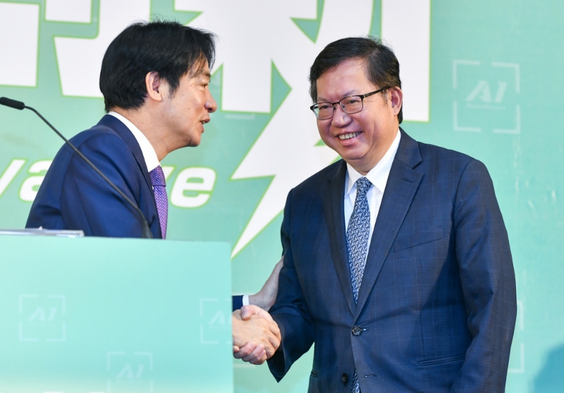 ▲郑文灿(右)涉案后辞去海基会董事长,成为赖清德(左)新政府首个落马的官员。 中时资料照