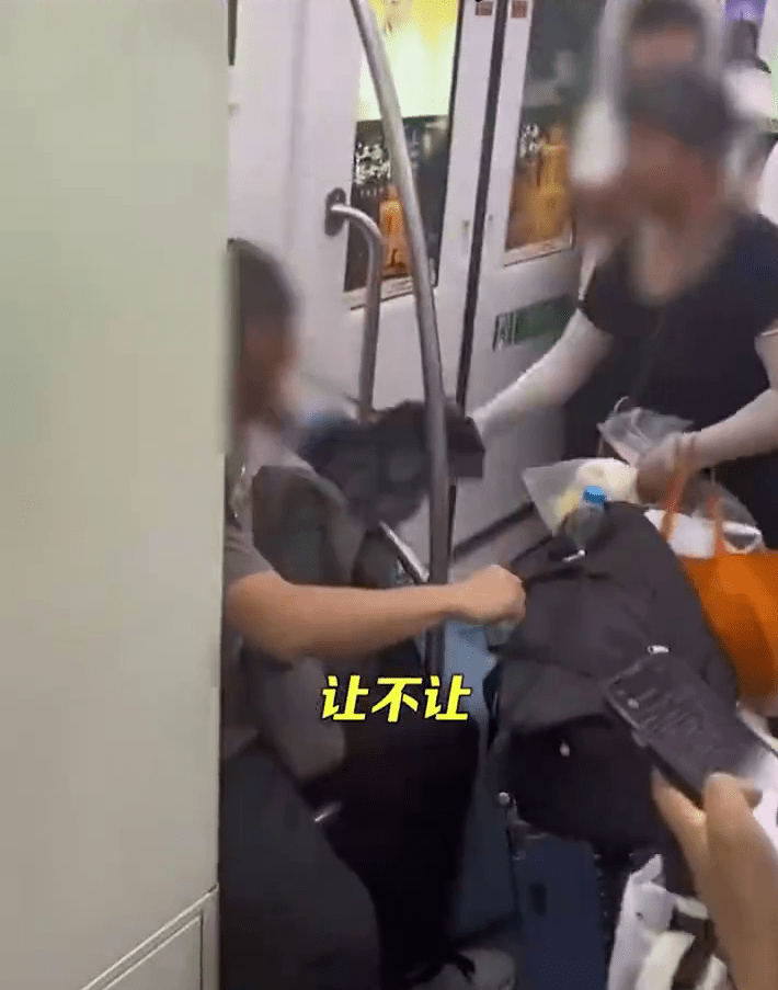 网传影片中显示,男子坐在地铁的座位上,老人站着不断用雨伞抽打坐着的男子,并一直说:“让不让?让不让?”男子回应:“不让咋的?”老人则回复:“起来,好意思的,请你让一下,爱心专座你知道吗?我是残疾人,你是不是?”