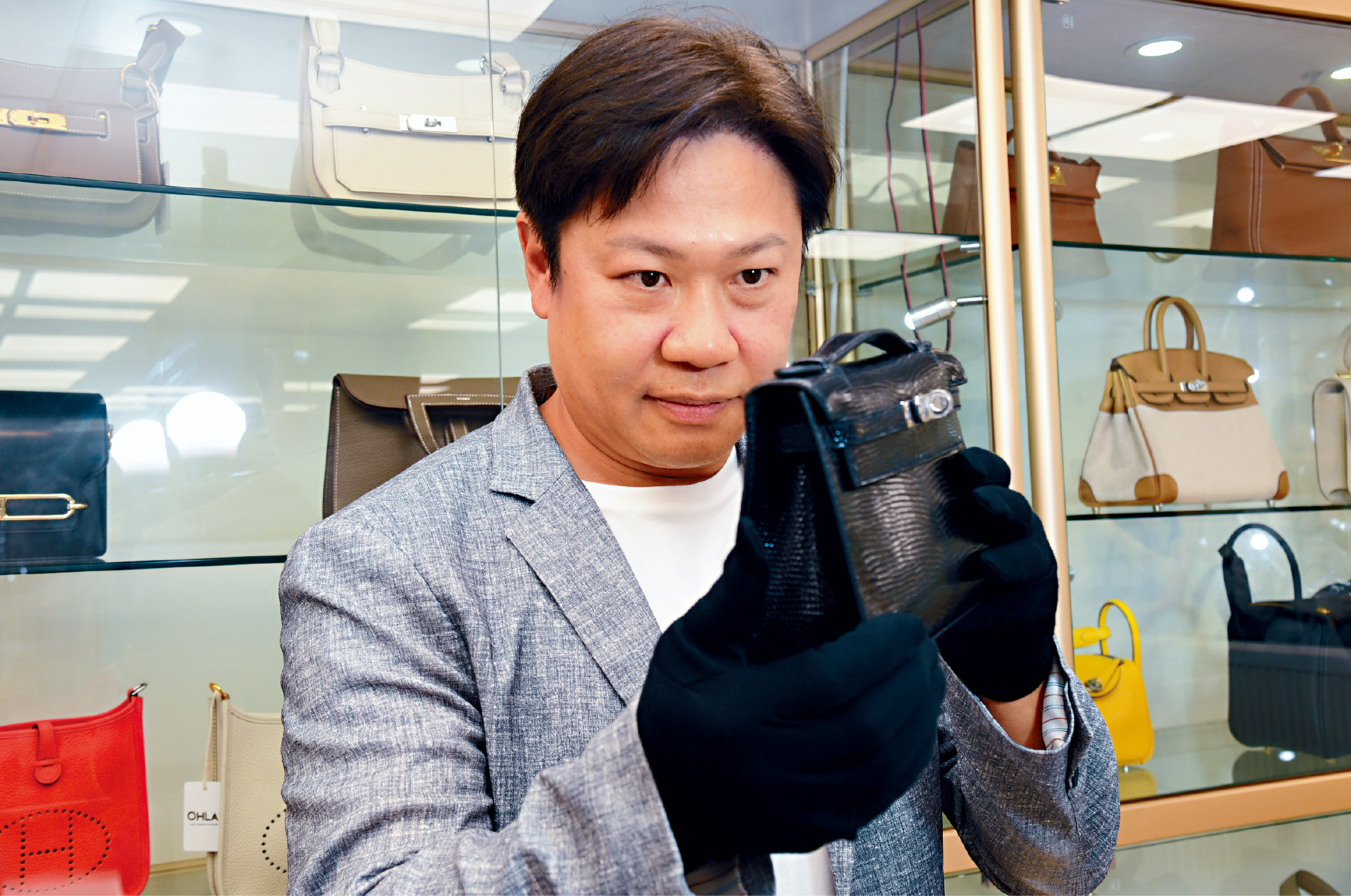 ▲奢侈品鉴证师朱志强表示,辨别奢侈品牌手袋的真伪,要留意五金电镀接驳位置打磨的平整度。