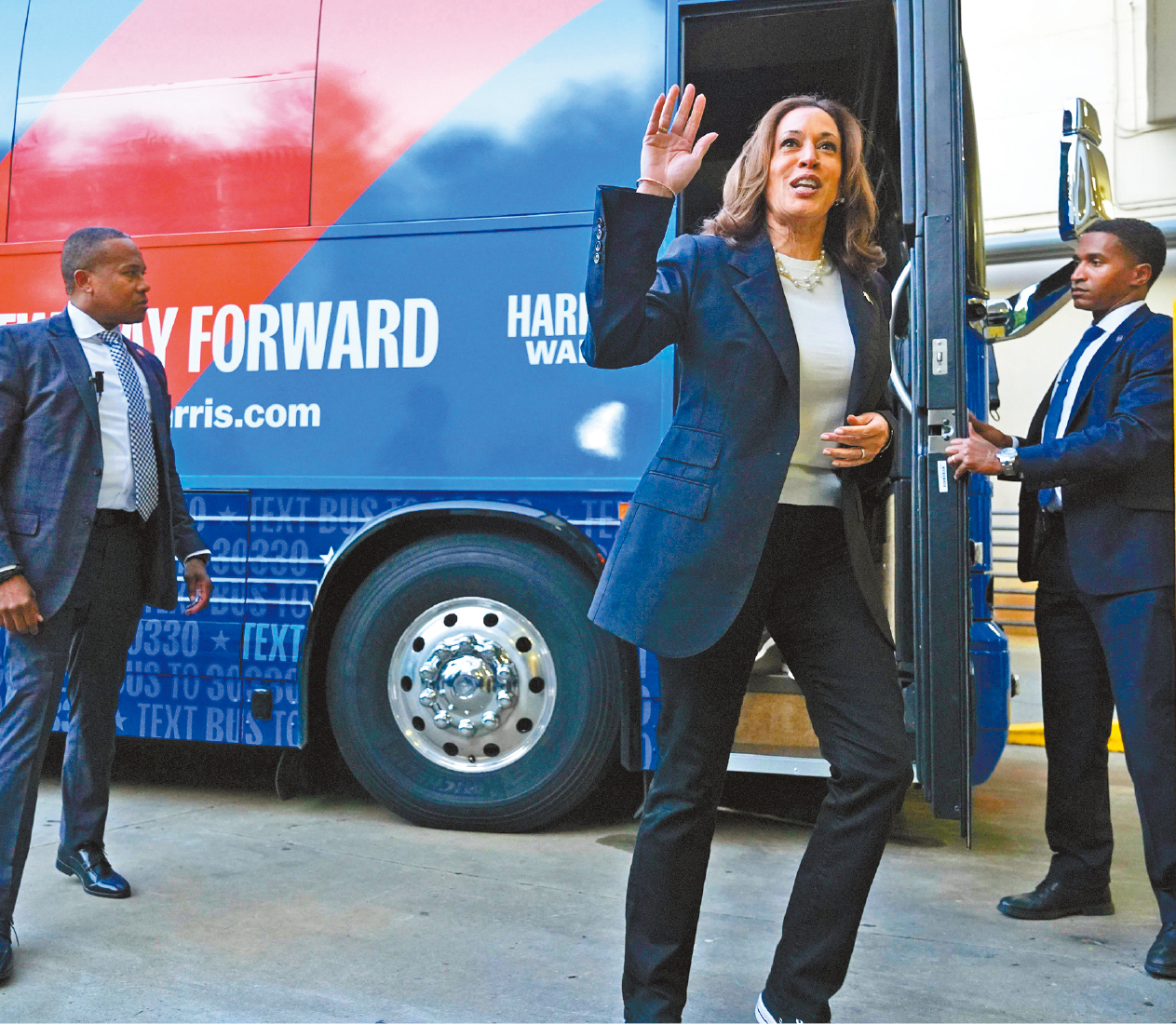 ▲哈里斯在关键摇摆州份乔治亚州展开2天巴士造势之旅,争取这个传统红色州份的选票。 美联社