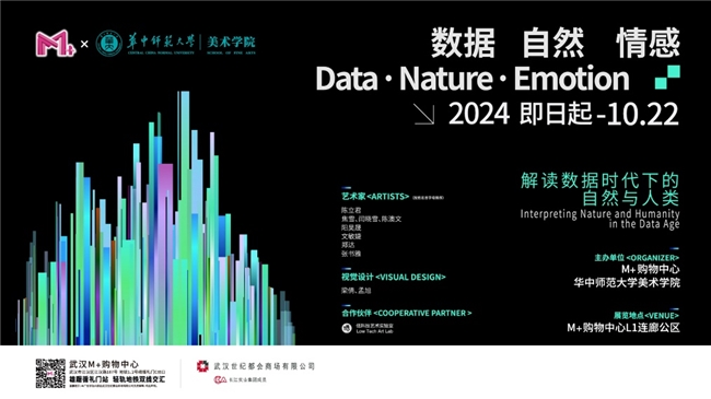 商业空间焕发新生,艺术赋能城市文化。作为和记黄埔地产华中首个旗舰项目的武汉M+购物中心,坚持履行社会责任,开业至今已多次与本地知名学府、学术协会,包括“湖北美术学院雕塑与公共艺术学院”、“武汉设计工程学院”、“湖北省美术家协会”、“武汉潮玩设计研究院”等达成校企耦合,共同提升商业空间艺术品位与文化氛围,促进了美术教育事业的健康蓬勃发展。M+一直致力于文化艺术与商业的结合,将艺术从传统展馆带入日常生活场景,使大众在购物、休闲的同时,也能感受到前沿艺术的魅力。此次合作,不仅丰富了商业空间的文化内涵,也为高校艺术创新提供了更广阔的展示平台。“《数据•自然•情感》—解读数据时代下的自然与人类艺术展”于 8月23日至10月22日在武汉M+购物中心举办,由华中师范大学美术学院在校师生与大师级艺术家创作、策划,透过多维的艺术表达,聚焦探索数据、自然与人类间的深刻联系。现场展出的七大作品,承载了创作者们对于“数据、自然、情感”交织下的思考与探索,并通过传感器、AI、3D打印等技术逐一展现数字信息、文化内涵、情绪感受。旨在以系列艺术作品和多元互动装置为创作媒介,展示人工智能作为我们理解世界的同谋者角色,如何在创作中发挥作用,构建一个与观众多维度的对话空间,激发对数字时代的思考与想象。