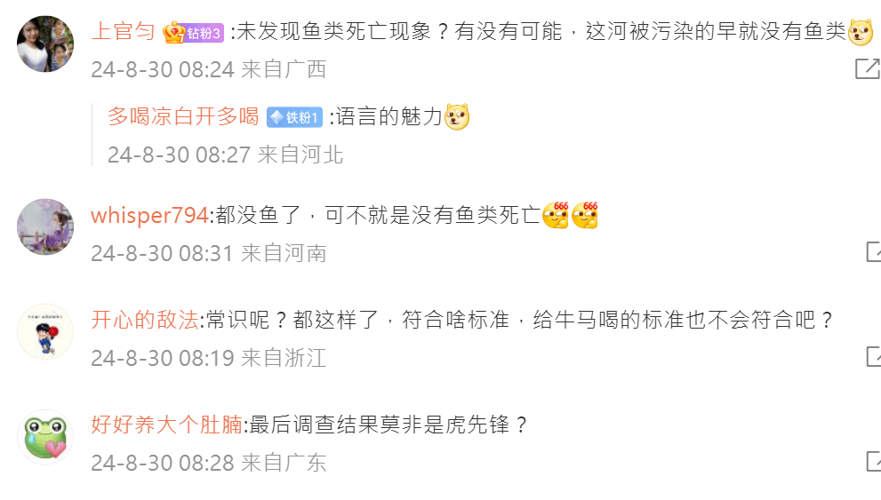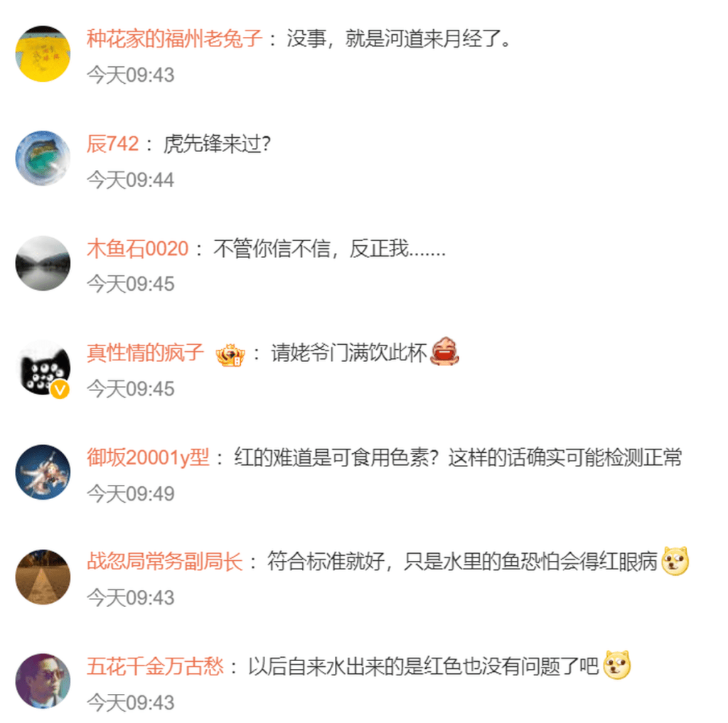 通报称:镇工作人员已于28日12时30分左右会同环保执法人员赴现场踏勘,当时河道局部(约30米)呈现红色,未发现有污水排放现象。 经现场取样检测,河道水质COD、氨氮等指标达到IV类水标准。 目前,水面已无明显红色,未发现鱼类死亡等现象。 如发现各类破坏生态环境违法犯罪行为,将予以严厉打击。