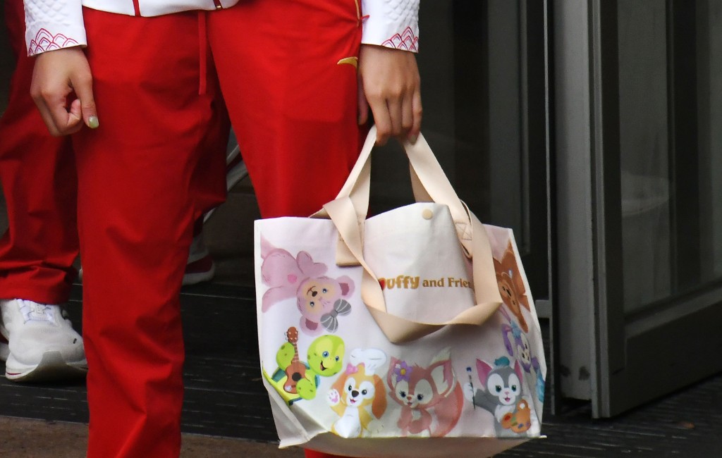 ▲全红婵今日改用迪士尼角色达菲熊的手提袋。