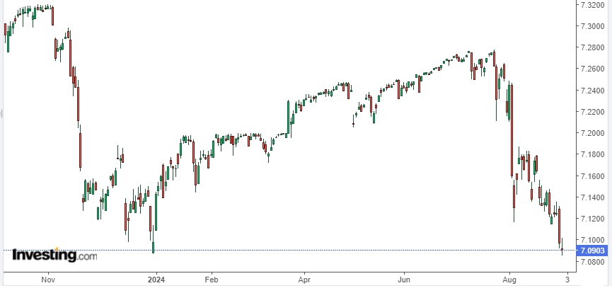▲在岸人民币走势(来源:investing.com,截至周五晚上7时)