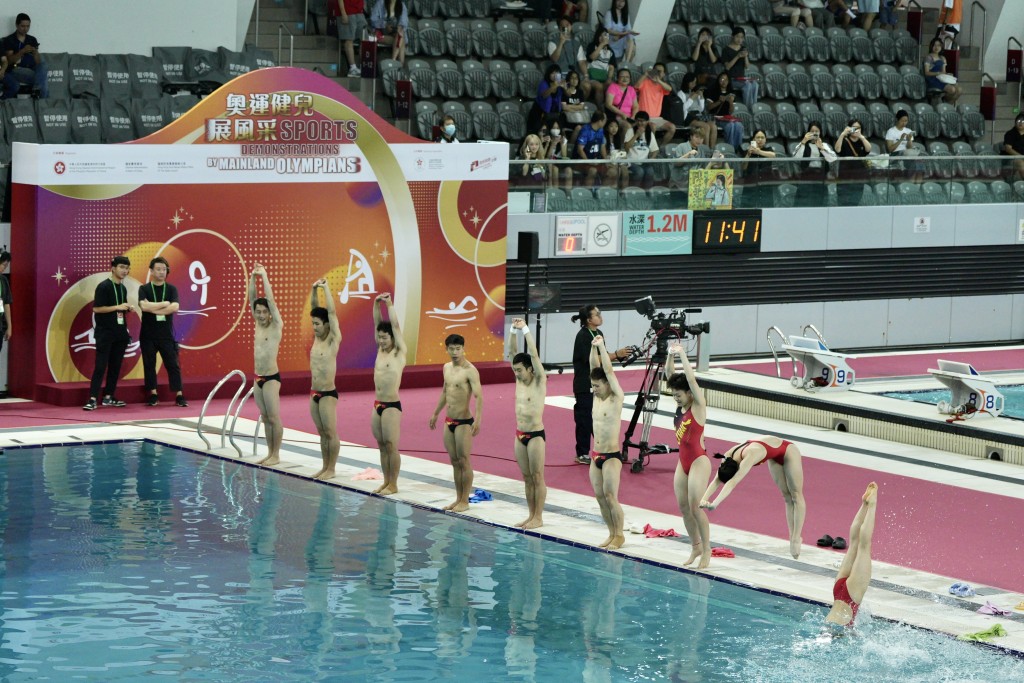 巴黎奥运国家队代今天(31日)来港第三天,他们将有2场示范,分别是在伊利沙伯体育馆举行的羽毛球、体操及乒乓球示范表演,以及于维园游泳池举行的跳水及游泳示范表演,其后代表团将离港,前赴澳门访问。《星岛环球网》现场直击。“跳水女王”郭晶晶惊喜现身。