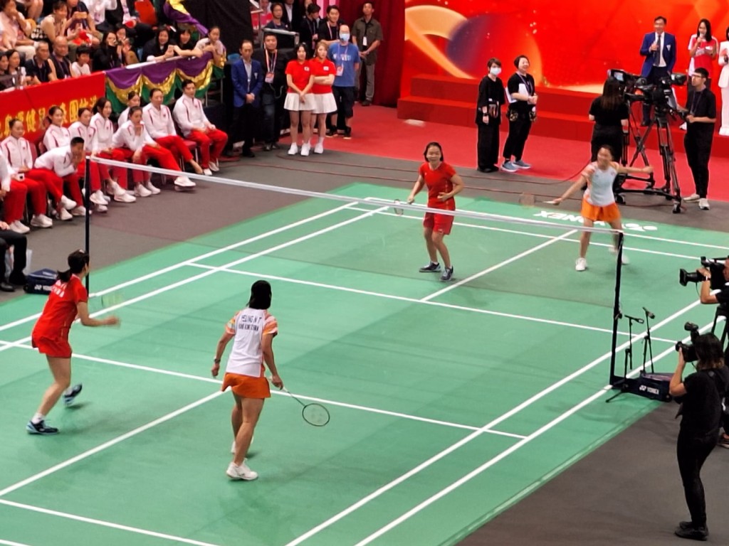港队女双组合“双杨配”出场,与国家女双组合混合组队斗波。杨雅婷与贾一凡组队,斗杨霈霖与陈清晨组合。