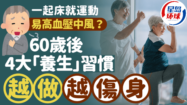 · 健康风险:早上是血压开始升高的时间,加上不少长者或有高血压、高胆固醇等问题。如果他们在起床后立即进行慢跑等运动,血压恐大幅飙升,增加他们患上心肌梗塞和中风等风险。