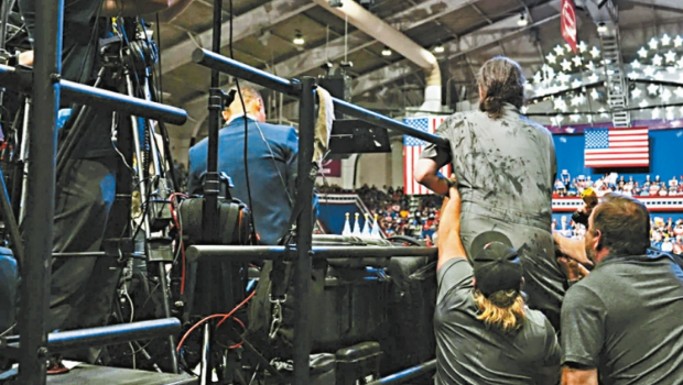 综合美联社及CBS报道,特朗普30日下午在宾州约翰斯敦(Johnstown)演讲,就在他批评主流媒体针对他作出不利报道,并指责CNN阿谀奉承采访副总统哈里斯时,一名男子突然闯入采访区,越过围栏后,爬上电视台记者和摄影师所在的升降台,身边的人试图阻止,最终数名警员介入,发射电枪后把他带走。