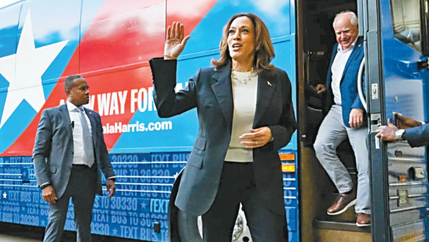 民主党正副总统候选人哈里斯与沃尔兹(Tim Walz)从9月3日起,将乘坐大巴前往全国50个地点拉票,并以堕胎权为宣传主轴。活动首站将是前总统特朗普的根据地佛州棕榈滩。