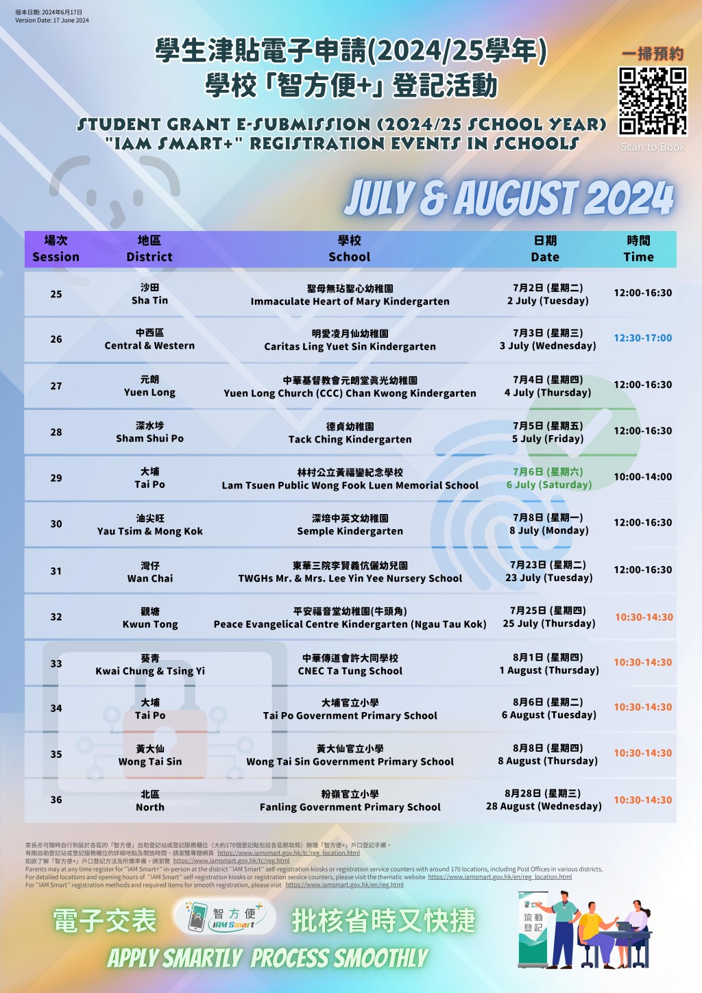 此外,家长及学生亦可预约前往任何一区的指定学校即场登记。要留意,11至17岁人士必须在父母或监护人陪同及同意下,才可以登记或升级“智方便+”,如通过自助登记站登记或升级,父母或监护人须为“智方便”用户。