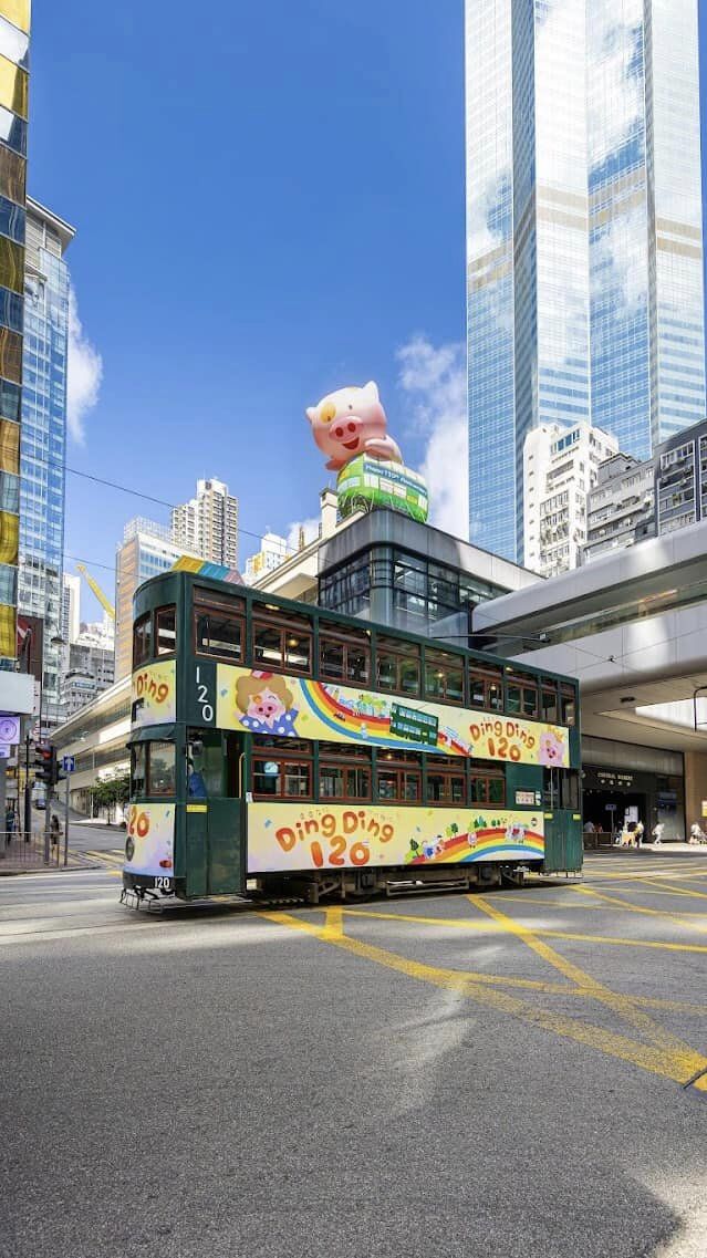▲麦兜坐住叮叮穿梭港岛街道,看是否有机会乘坐特别版120号电车。(图片来源:《亲子王》)