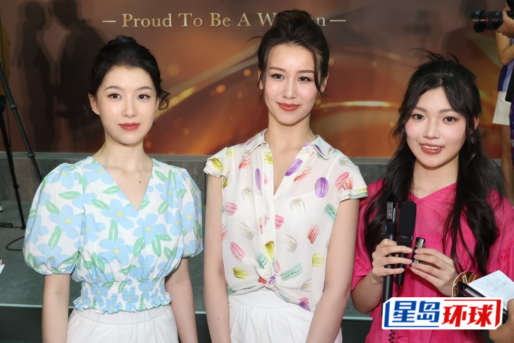 陈紫佟、卢凯怡与吴芷靖齐齐受访,讲到卢凯怡在台上喊? 她坦言有少少落泪,因已进入九月,离比赛不到两星期,“想到我们15个女生,之后便不会日日见面便忍不住,参选是美好回忆,希望大家继续做朋友。” 她又指家人未到现场,所以没想过获票数得奖,今次得奖会更有信心,因自己不算是热度佳丽,问有信心做黑马? 她笑言希望可以,会想方法拉票。 而陈紫佟表示获姊姊到场打气,但对于获高票数是不敢相信,觉得荣幸和窝心,坦言之前对比赛信心不大,今次获奖是强心针。 至于吴芷靖对于获奖,形容是超级开心,笑言见到现场朋友挥手,她也忍不住和大家打招呼,对于比赛她自觉进步很多,特别是广东话,至于其他方面就要大家留意比赛。 问到与9号陈甜甜比较广东话? 她笑言要对自己有自信,所以觉得自己进步比较多,又指和甜甜与其他佳丽对话,都以广东话为主好好练习。
