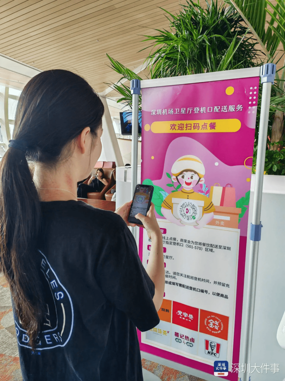 ▲旅客只需通过微信扫描点餐二维码或打开深圳机场APP,就可以预订心仪美食。