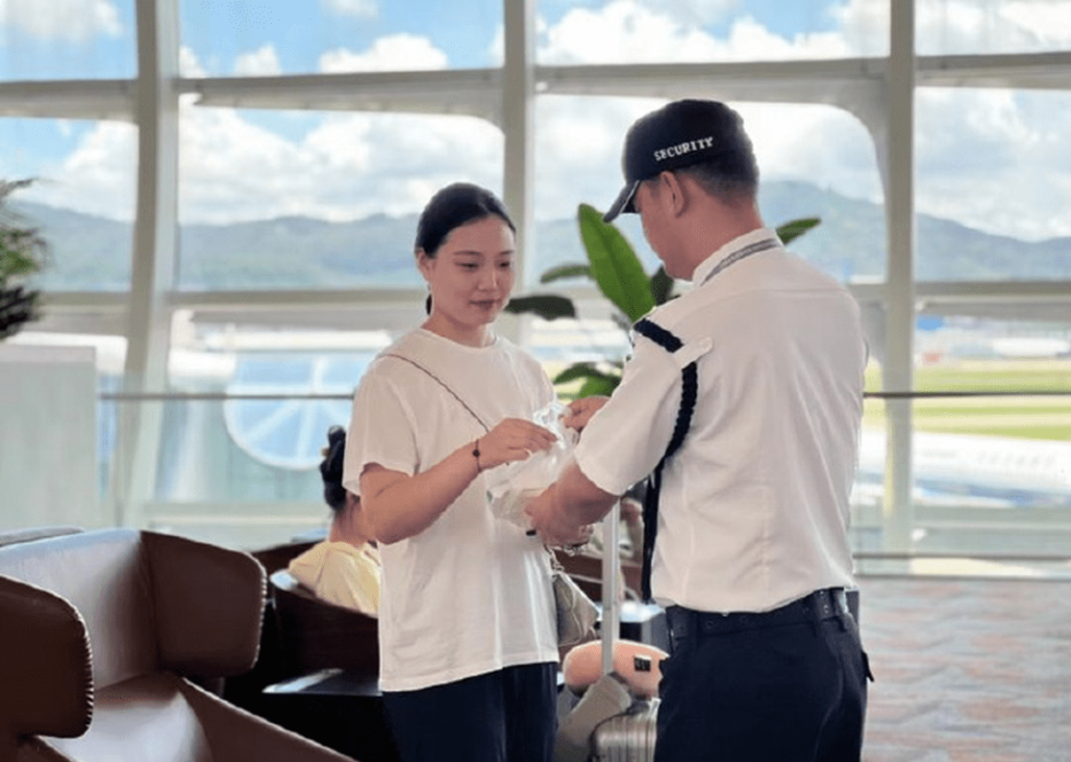 ▲登机口外卖餐饮配送服务由机场物业工作人员提供。