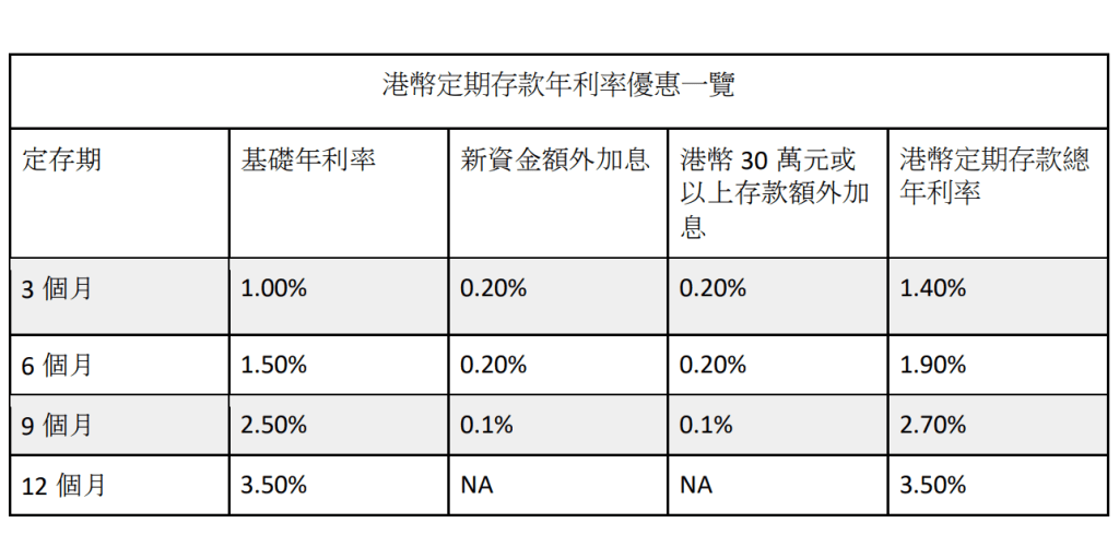 港元定存最高3.5厘