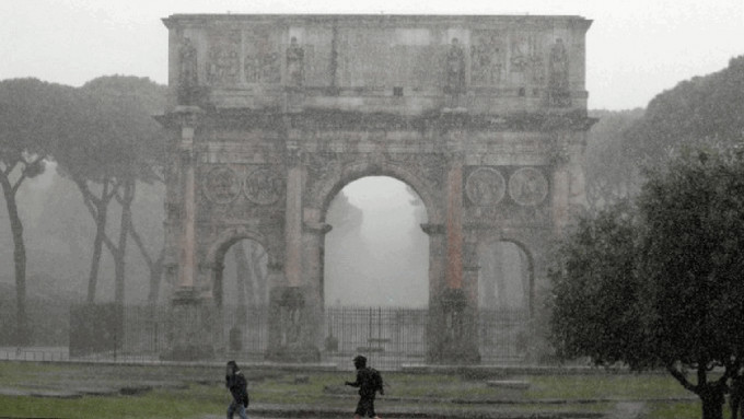 周二(3日),意大利罗马降下一场猛烈的暴风雨。有闪电击中罗马竞技场附近的君士坦丁凯旋门(Constantine Arch),对其造成损害,部分位置有碎片剥落。