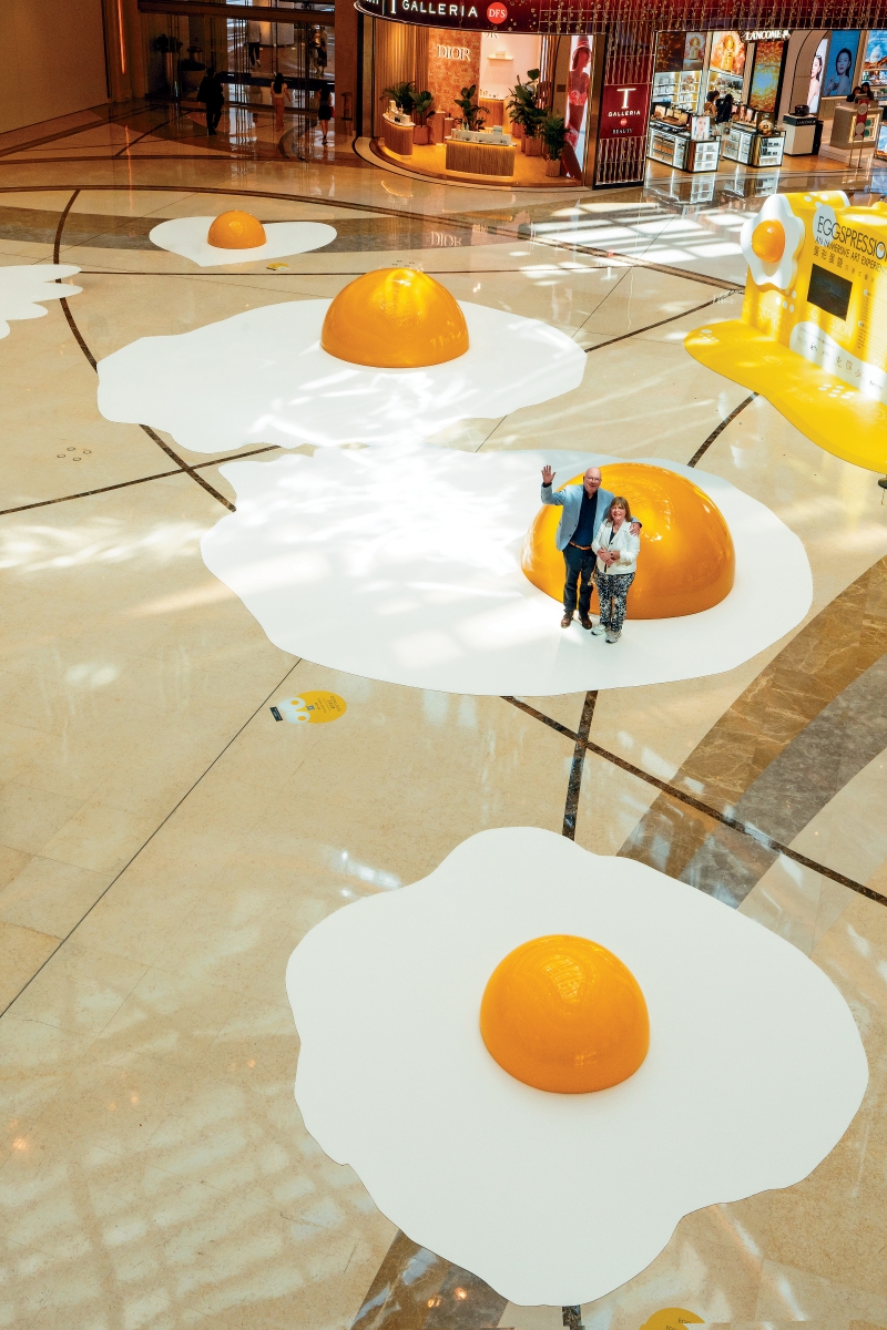 “蛋是生命的源头,目前我们正经历全球暖化,摧毁着世上的生命。假如气温太热,未来所有的生命都将被毁灭,就像被煎熟的蛋。”从荷兰远赴澳门的Henk Hofstra坐在他设计的立体鸡蛋上,讲述他的创作意念,“为了带出这些议题,我创作了这些鸡蛋,强调现在街上的气温很高,高得甚至让你可以在上面煎蛋。藉由作品,我希望向孩子们带出这样的议题,并讲述一个关于蛋、关于生命力,以及关于全球暖化的故事。”