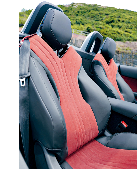 ▲Nappa真皮座椅中央部份,以红色Alcantara防跣物料包裹。
