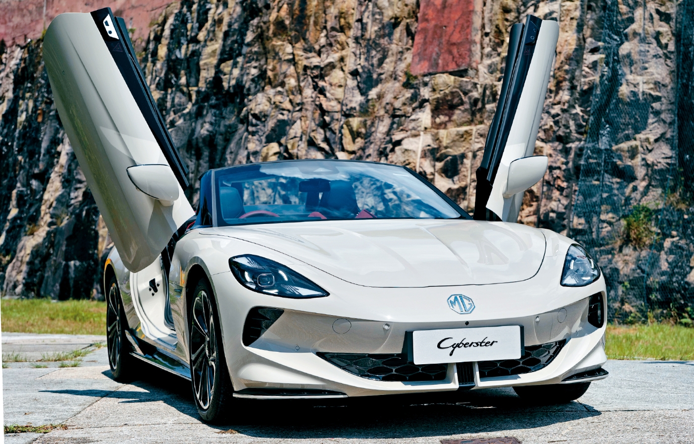 期待已久的MG Cyberster电动开篷跑车,首批右軚版示范车终于抵港,虽然新车要9月中才正式发表,不过代理早前举行了传媒及VIP预览会,据知首两天预展已收到近90张定单,多少证明了这款全球首辆纯电动双座开篷跑车的魅力。香港版Cyberster有两款型号选择,一律配用77kWh宁德时代(CATL)魔方锂电池,入门单马达后驱2WD版输出340ps马力及475Nm扭力,0至100km/h加速5秒,续航力约510km(WLTP),“一换一”意向价$529,000起。