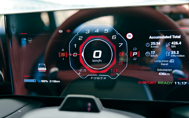▲Supersport模式錶板显示像转数錶,其实是动力输出比率显示。