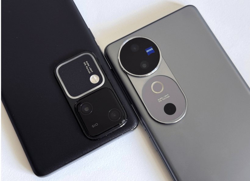▲V40 5G(右)终于升级蔡司镜头,并沿用50MP广角及50MP超广角组合。