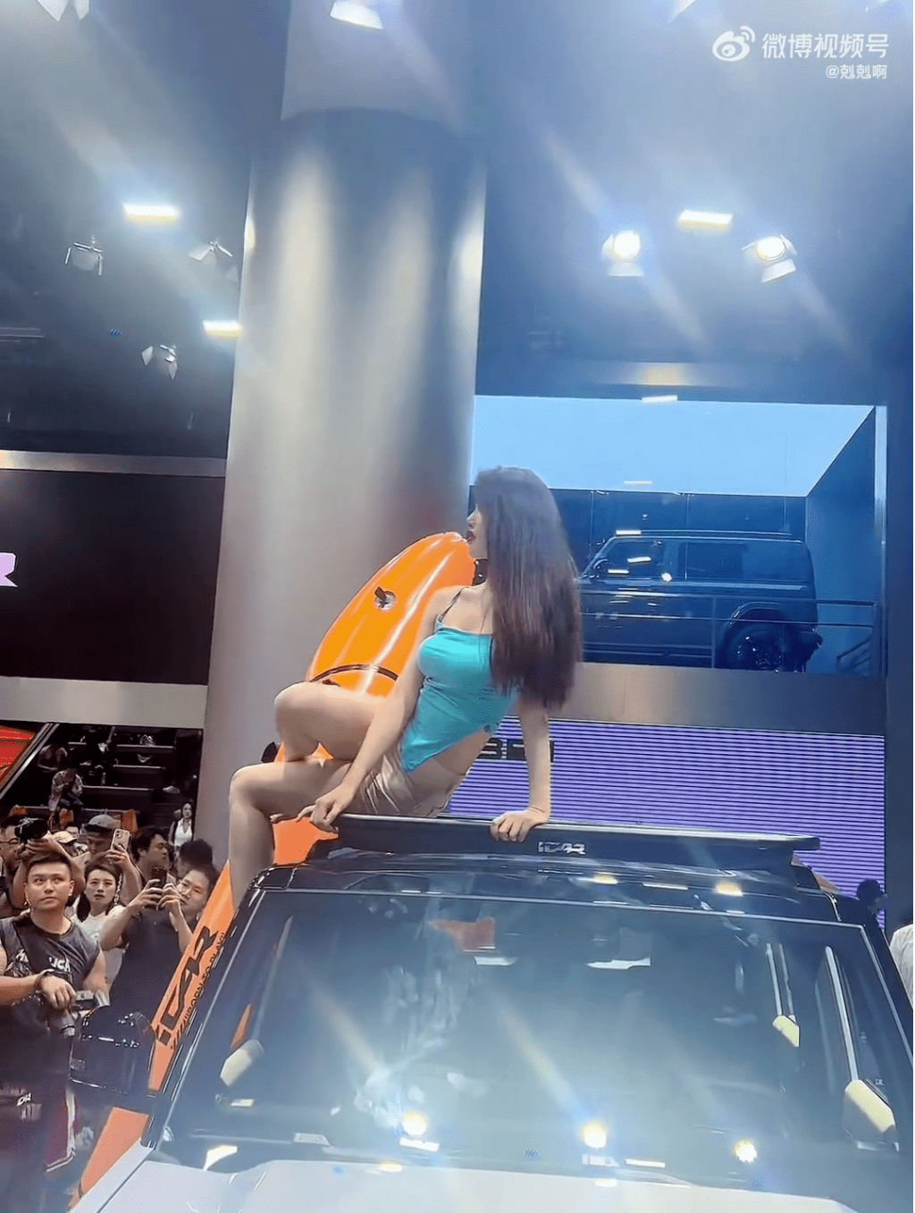 在四川成都2024车展上,奇瑞ICAR展位一名穿吊带背心、热裤的女模特儿在车顶上摆出各种“大尺度”动作,众人围观拍照引发争议。有网友质疑该营销方式擦边、不雅;不过亦有网友觉得“很正常”。