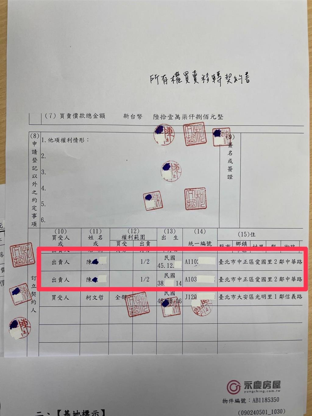 对此,民众党表示,该文件为“所有权买卖移转契约书”其中一份,因此只呈现部分权状买卖金额。
