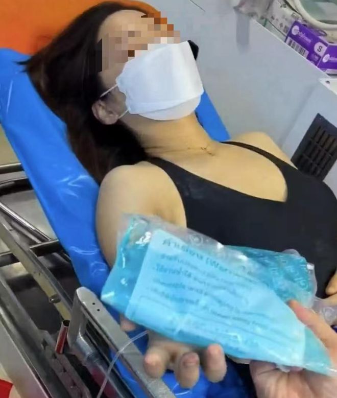 上周一(8月26日),来自内地苏州的邹先生一家在泰国旅游,讵料妻子高女士被毒蛇咬到。高女士在当地医院治疗4天至上周五(8月30日),稍有好转时便啓程回国。目前,她正在内地医院接受治疗,虽然脱离生命危险,但其中指被咬伤的部分仍然呈黑色。