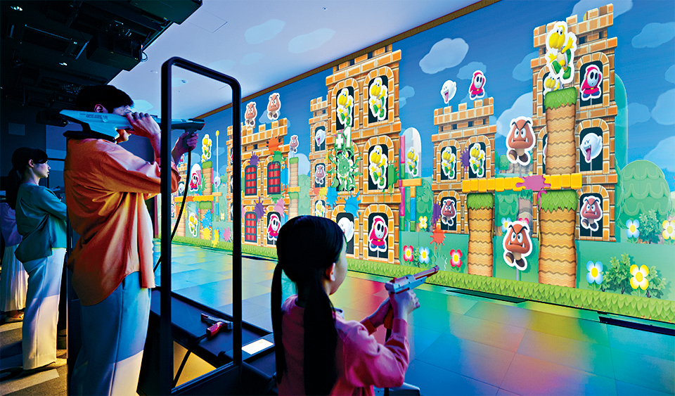地下的互动游戏体验区,设有8项任天堂招牌游戏可供畅玩,包括透过手机与地面的巨型电子屏幕互动的“百人一首”竞技花牌游戏、室内击球游戏Ultra Machine、对 展示Super Mario世界的投影屏幕进行的Super Scope射击游戏、水管抓球游戏Ultra Hand、2人携手测试爱意与默契的Love Tester、透过影子的动作进行的巨大版Game & Watch游戏、必须2人合力操控超巨大遥控器畅玩复古电玩游戏的Big Controller,以及有超过80款红白机、超任、任天堂64及Wii游戏可供体验的Nintendo Classics,大家可利用入场时获发的10枚代币,选择心仪游戏玩乐。