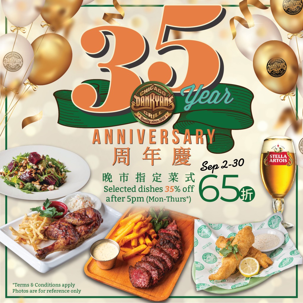 ▲Dan Ryan's开业35周年,一连两星期推晚市65折优惠。