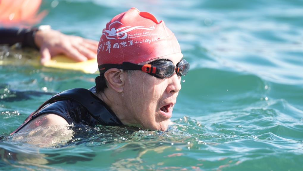 ▲马英九今年第11次下水挑战日月潭。南投县政府提供