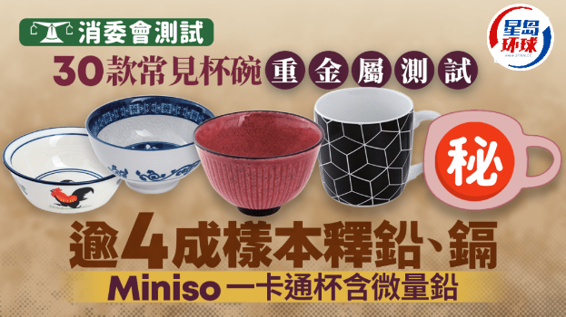 消委会陶瓷餐具|陶瓷杯、碗往往设计造型美观,且耐热耐用,又容易清洗,因此在家庭餐桌,可谓相当常见。不过,世界各地不时出现从陶瓷餐具中检出铅、镉等有害重金属的个案。而铅和镉等有害重金属或会从食具中迁移至食物和饮品,随之被人体摄入而影响健康。消委会是次测试了市面上15款陶瓷杯和15款陶瓷碗的铅、 镉释出量,当中不乏常见品牌如Daiso、Miniso、DYNASTY Fine Bone China、Franc Franc等,以了解市面上陶瓷餐具重金属含量及安全情况。