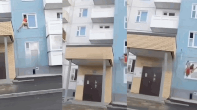事件发生在9月10日下午,地点在俄罗斯克拉斯诺亚尔斯克边疆区,该名36岁人妻赖索西伯利亚(Lesosibirsk)怀疑丈夫出轨,并与情人在家中幽会,于是想爬墙回家“突击检查”。