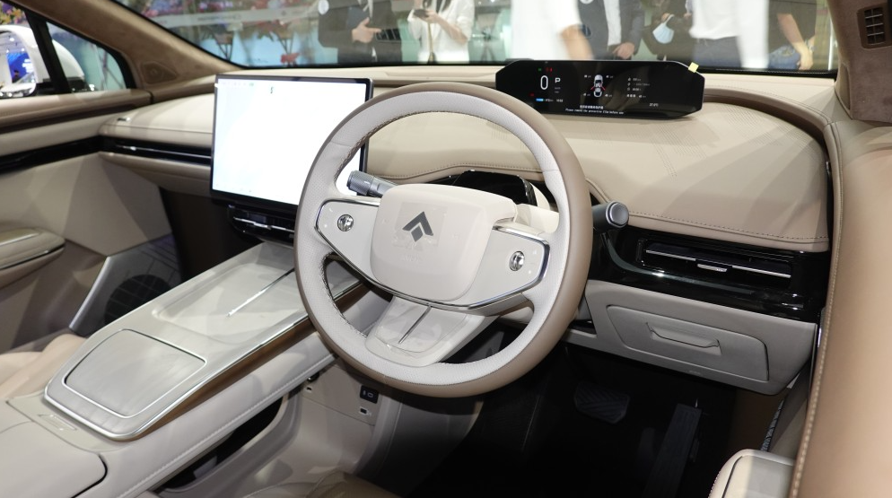 ▲广汽红旗舰店投入服务,场内展出纯电欧翼式版本HYPTECHT,车厢采用全数码化仪表及中控触屏。