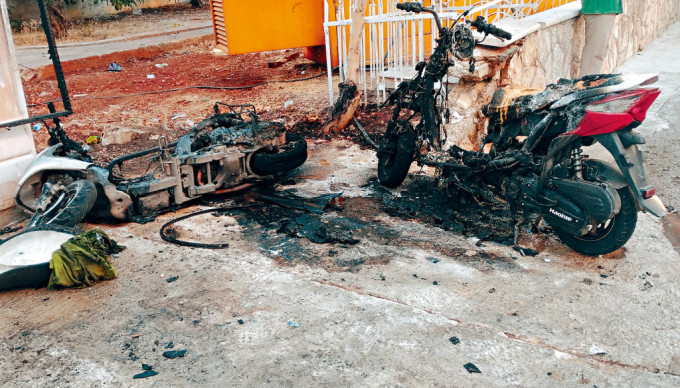 ▲在黎巴嫩巴勒贝克市拍摄的照片,显示的是通讯设备爆炸损毁的电单车 。