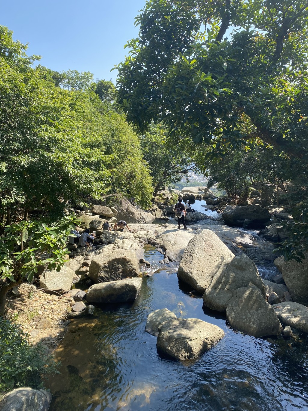 打卡必影有两个瀑布,分别是“莲苑台瀑布”和“小夏威夷瀑布”,瀑布原址为蓄水池,1950年代曾经营“小夏威夷泳场”但其后关闭,如今可看到一半的堤坝遗址。石涧周围绿树成荫,即使炎夏也不觉闷热,很多家庭都会在树下野餐,而小朋友则会在石涧上的大石头间嬉戏,就算是玩水玩石头也不亦乐乎。回程走至将军澳村返回市区,再转乘小巴或步行至宝琳站或新都城中心休息医肚。