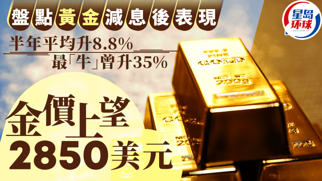 美国开启减息周期,现货金曾突破每安士2,620美元,再创新高。有分析师相信,金价仍可进一步上升,明年中之前可达2700美元。事实上,翻查历史数据,1995年至2020年8次美国联储局减息后,金价在往后6至12个月,多数录得正回报。当中最“牛”一次,是减息后半年大升35.8%,平均计亦升8.8%。若今次减息周期,金价半年后能达8.8%的平均升幅,金价料见每安士2,850美元。