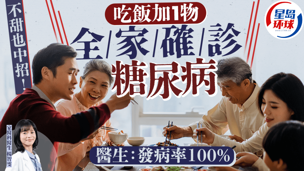 她分享病例指,有一家人先后向她求诊,最后通通确诊糖尿病,发病率100%!细问之下,杨医生发现他们一家人的饮食习惯大有问题,是令血糖失控的主因。