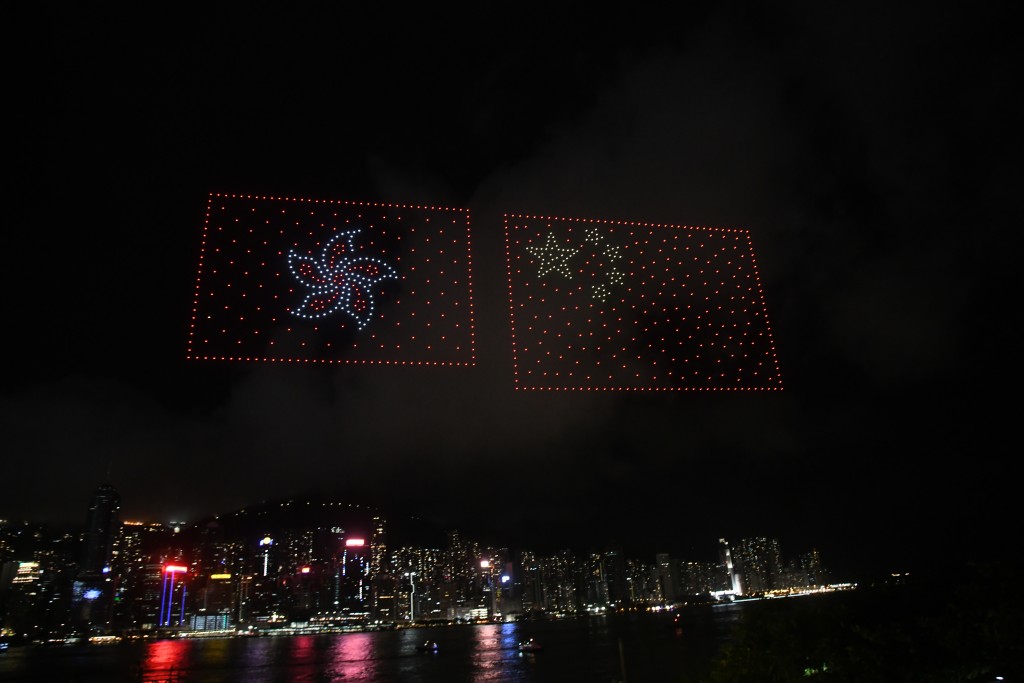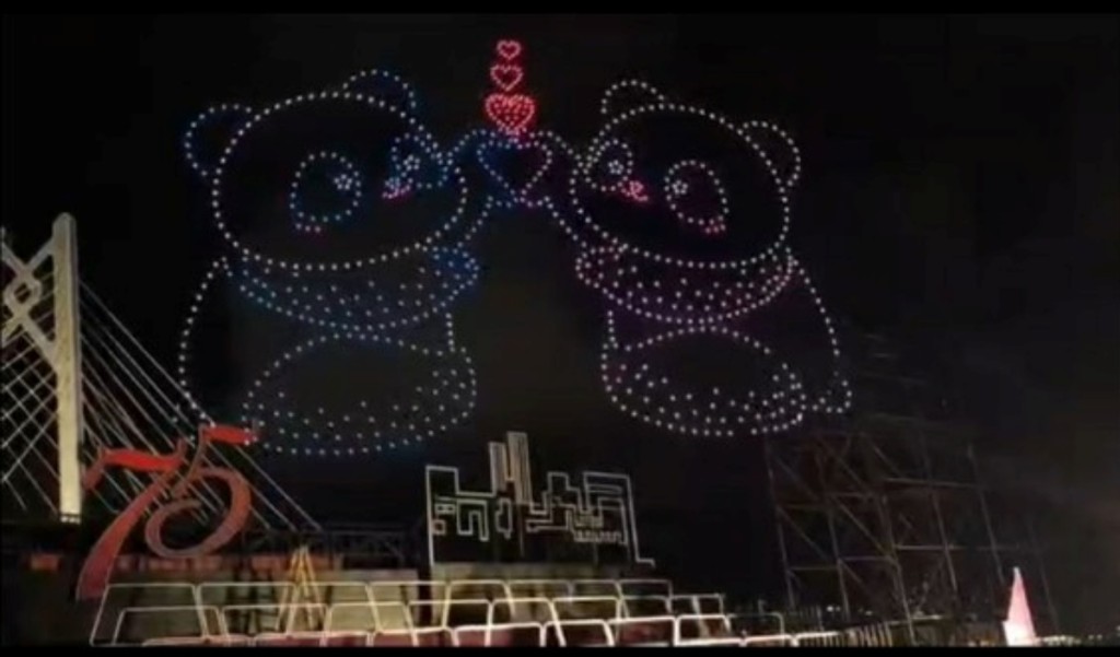 为庆祝国庆75周年,政府将在国庆日前夕即下周一(30日)晚上,在西九文化区艺术公园举办“新生代千人合唱贺国庆”活动,有破纪录的2099架无人机将划破维港上空,组成不同的团案,与全港市民迎接国庆。 《星岛》记者昨(24日)晚在西九文化区独家直击活动的彩排过程,虽然不时下着微雨,但有2000多架无人机在空中组成“国”、“75”、“凤凰”等,其中亦少不了近日热爆的“熊猫”图案,彩排至深夜仍然继续。